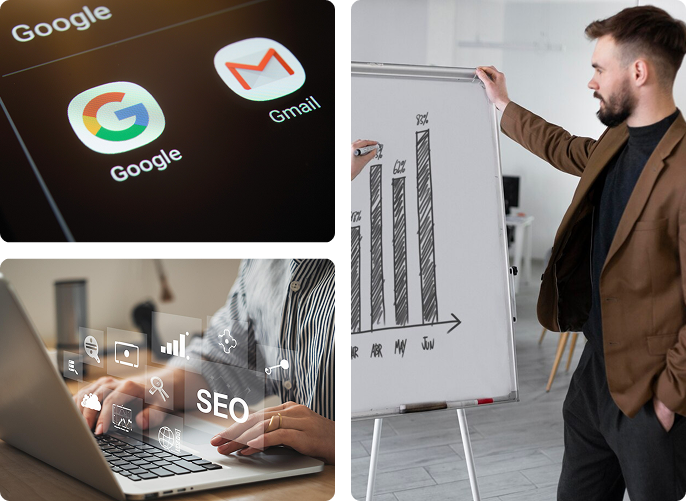 We run specific ad campaigns on Social Media platforms and Search Engines, and provide creative assistance with landing page design, ad copy and ad images/videos.