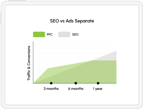 Our research shows that SEO and Ads combined deliver, on average 30% – 50% higher conversions in the first 90 days.